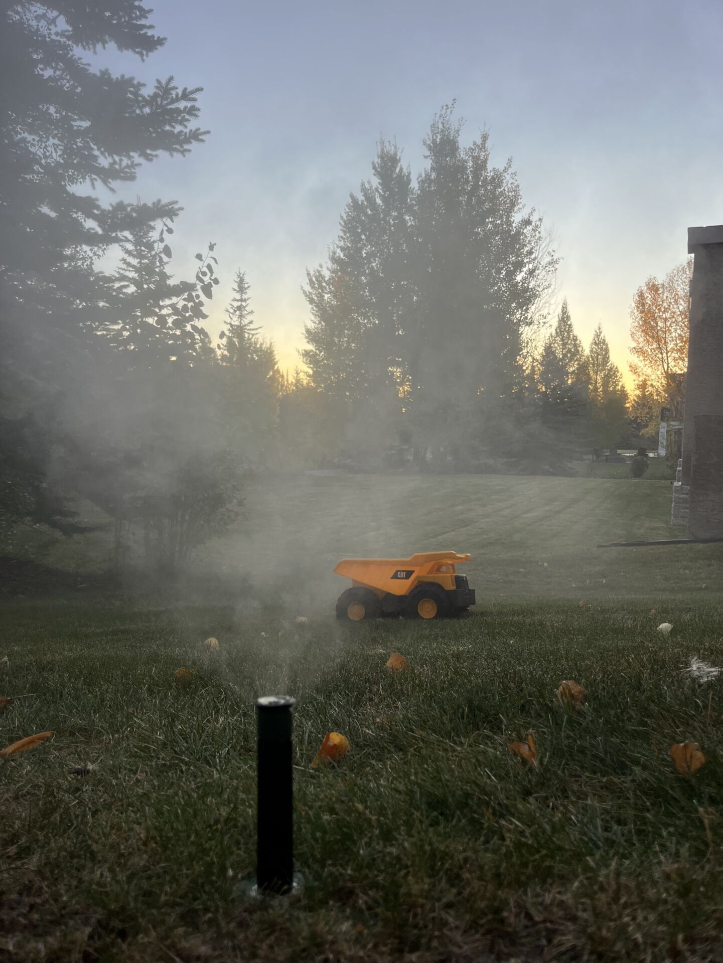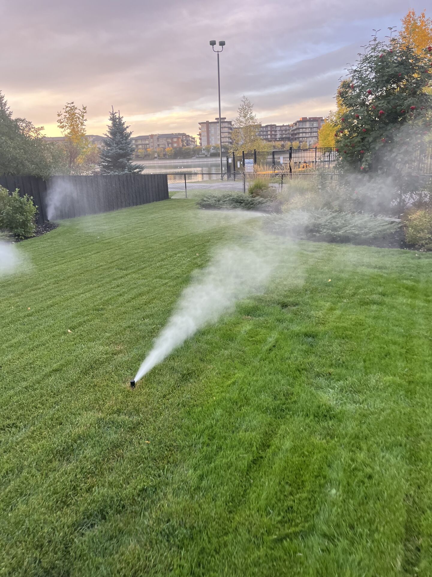 A sprinkler system should be winterized before overnight temperatures fall below zero degrees Celsius. For us here in Alberta, we recommend winterizing your irrigation system before the end of September.